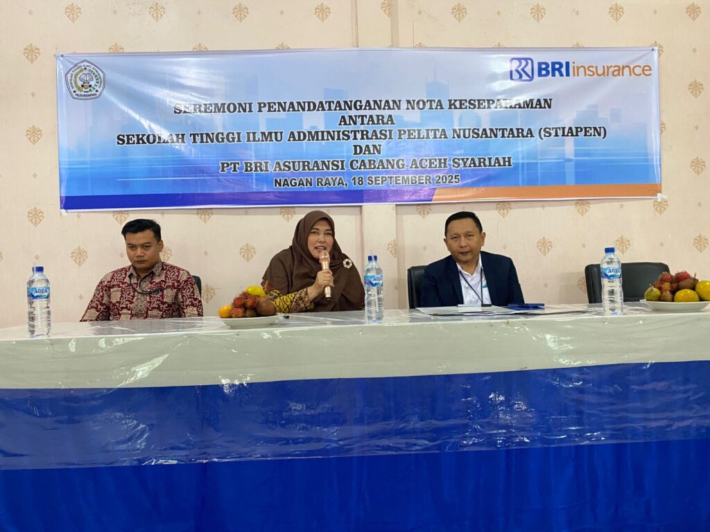 STIANews: Sekolah Tinggi Ilmu Administrasi Pelita Nusantara (STIAPEN) menjalin kerja sama dengan PT BRI Asuransi Cabang Aceh Syariah. Penandatanganan Nota Kesepahaman (MoU) berlangsung di Aula Mini Lantai 1 Kampus STIAPEN, Kamis, 18 September 2025.